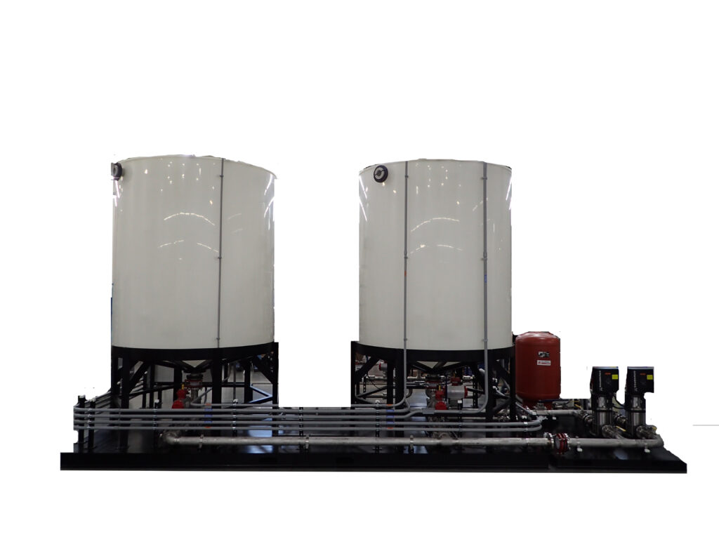 - (2) 70-gallon polypropylene storage tanks with associated low-level switches