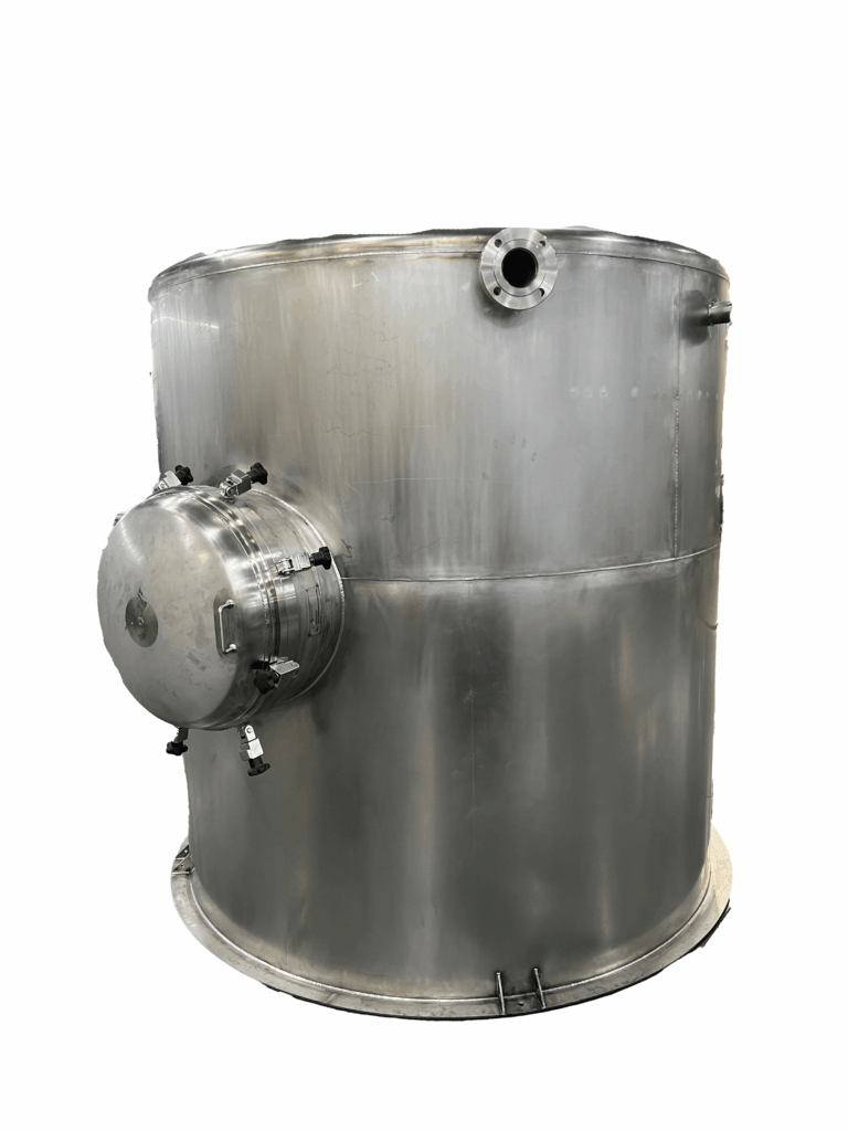 - Reinforced construction with flanged nozzles, a 24” side manway, and Endress radar level sensor.