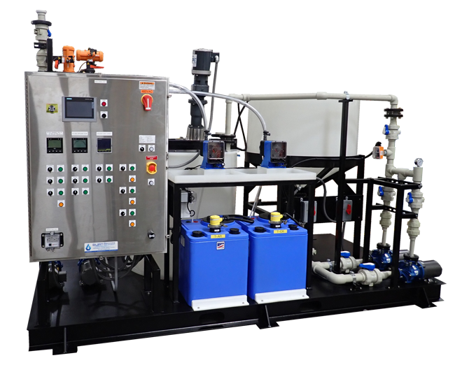 Automated waste neutralization systems use pH adjustment chemicals to process 2-12 pH range liquids with various flow rates. Burt Process has both continuous and batch treatment options, including designs for difficult-to-adjust waste streams.