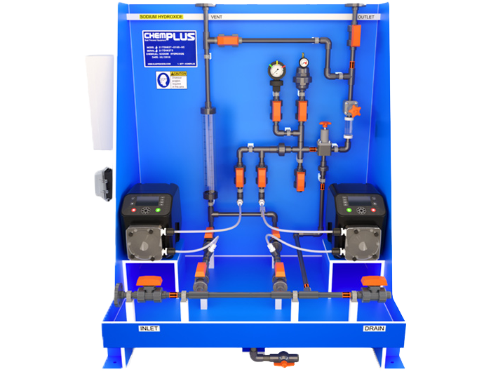 All ChemPlus systems are shipped as prepackaged polyethylene skids—lightweight, compact, and corrosion-resistant—with flexible pump configurations compatible with peristaltic, diaphragm, electronic metering, air-operated double diaphragm, or progressing cavity pumps.