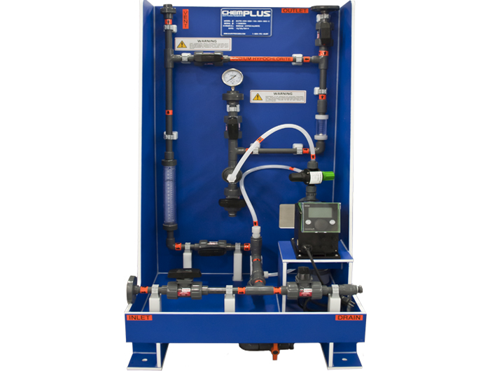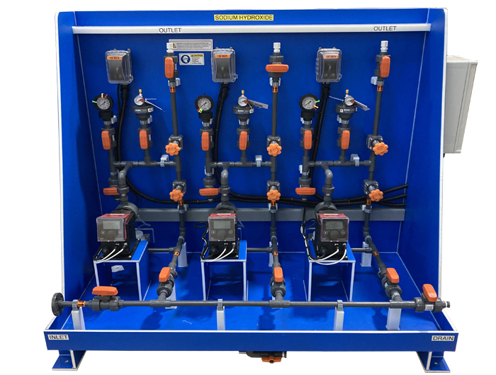 ChemPlus Triplex: Incorporates three metering pumps for lead/lag operation, redundancy, or multiple-chemical dosing. It can also increase flow capacity by running multiple pumps in tandem.