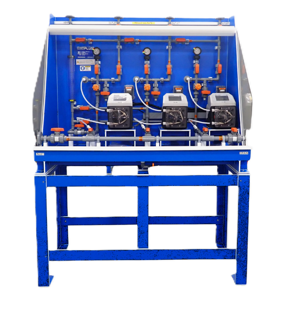 Chemical Feed Systems are designed for automated chemical injection into the chemical feed tank for water or wastewater treatment. In the dosing process, chemical reagents are added into a water stream at a precisely controlled rate with positive displacement metering pumps. Burt Process Chemical Metering systems have revolutionized the concept of chemical dosing by providing pre-engineered and fully customizable pieces of equipment for water treatment.